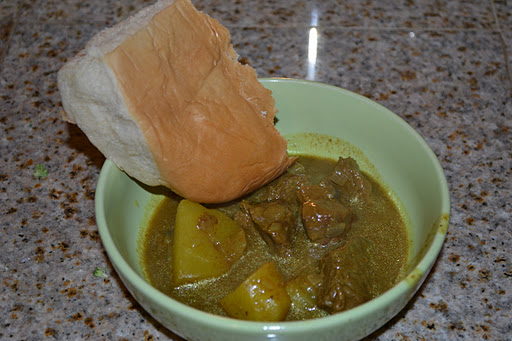I had a long day today and was craving something hearty for dinner. It had been a whiles since I had stocked up so I did not have too many options. I had some beef and coco bread (normally stuffed with a Jamaican beef patty) and pondered for a minute how I could combine the two. I think coco bread is fabulous for dunking in stews so I decided to make some curried beef. I am used to curried goat, chicken and fish. Rarely do I have curried beef, but I figured it’s the same concept and it’s quick, so I hooked it up!