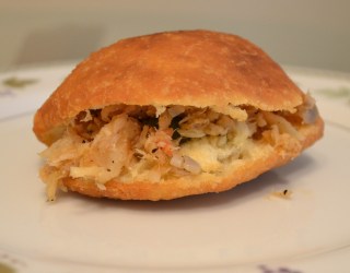 Fast forward to three weeks later when I finally attempted to make this all-time Guyanese breakfast favorite. I was adventurous. Instead of making regular bakes first to make sure I had the recipe and technique down my first attempt was to make the bakes stuffed with saltfish just like my big sis. It was an epic FAIL!  The bakes sank to the bottom of the pan and stayed there. SMH, I forgot one very important ingredient, baking powder!