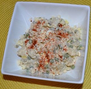 I had a head of cauliflower in the fridge that I needed to do something with. I googled cauliflower and came across a recipe for cauliflower salad from AllRecipes.com. This recipe is essentially potato salad without the potatoes. I was a little skeptical at first but I decided to give it a try with a few modifications.